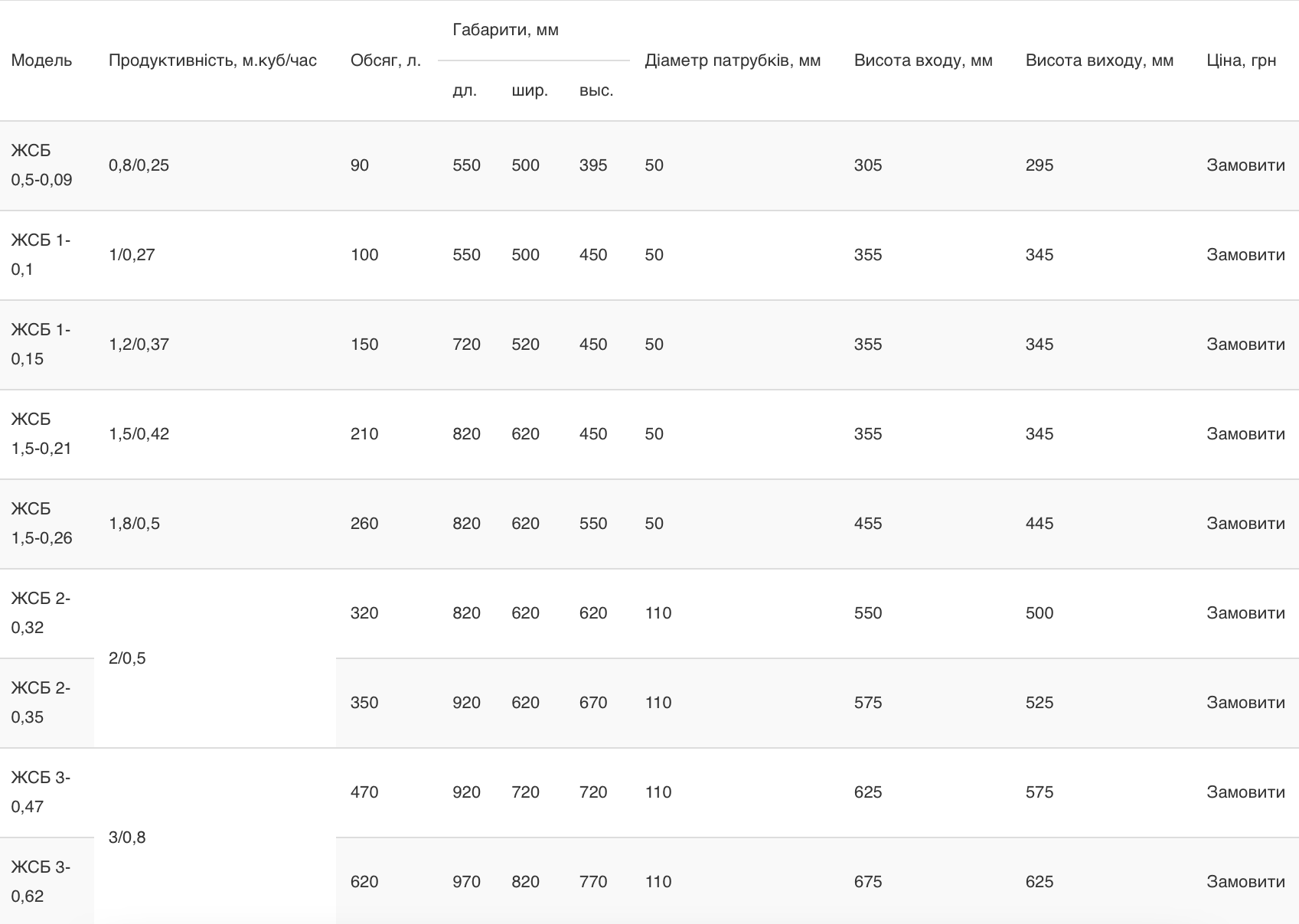 1) Жироуловлювачі під мийку серії «ЖСБ» з поліетилену доступні в наступних розмірах: